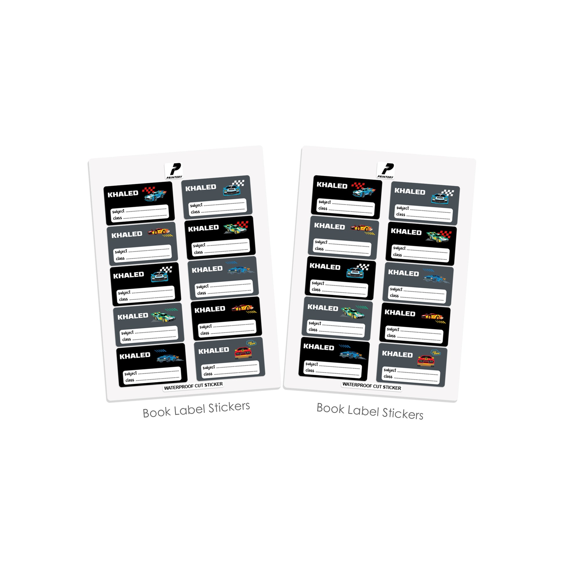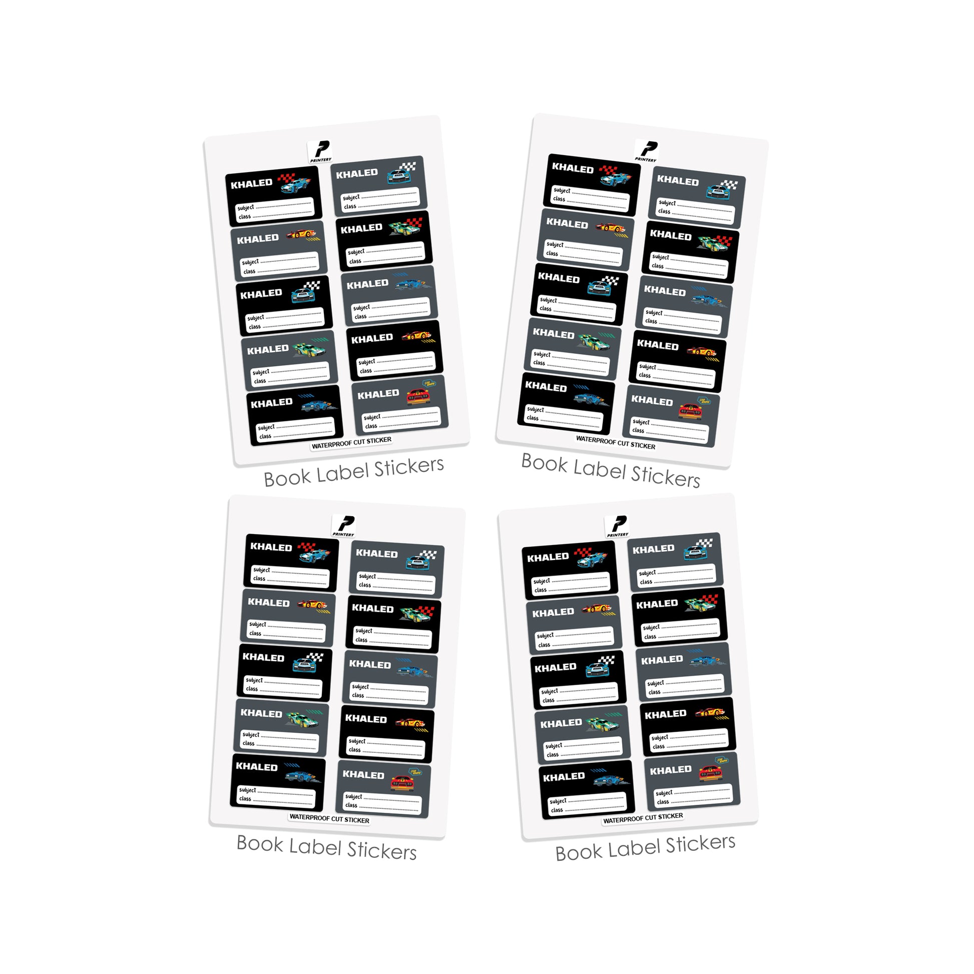 School Label Stickers Pack D139 - Race Car