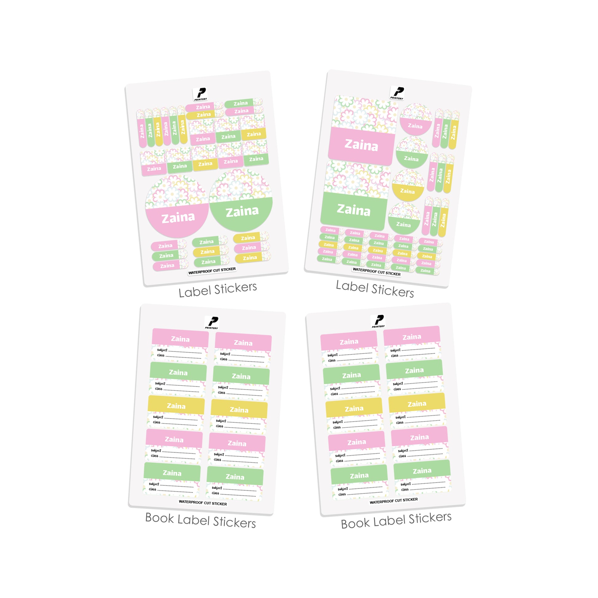 School Label Stickers Pack D162 - Flower Pattern